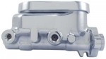 Chrome Flat Top Universal Aluminum Hot Rod Master Cylinder Manual or Power: This modern sleek master cylinder improves the appearance of this often ugly part. Polsihed and show chromed this dual reservoir MC has standard GM 9/16″ and 1/2″ ports on both sides for a truly universal fit. This unit is cast out of corrosion resistant aluminum and comes in 8 lbs lighter vs. the original cast iron version. Will reduce firewall loads as well provide a non-corrosive unit for under the floor applications.