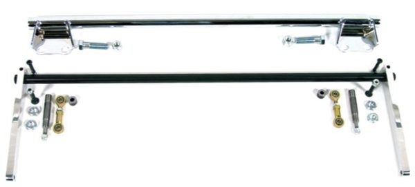 This high mount style rear anti roll bar is designed to be mounted to and run through your frame rails. The ends are splined allowing for removable billet aluminum arms. The arms and heim style drop links work on the outside of your frame rail. Bolts to your 4 link axle bracket with a supplied special shoulder bolt. For 4 links, this system will reduce your body roll to a point where the typical link bar binding is eliminated thus making the truck safe to drive on the street. This is the same bar that is available with the TCI pickup truck 4-link kits. 32-34 Ford & 47-54 Chevy half ton bar runs inside frame rails and requires a weld in cross member plus boxing plate. It will bolt to the TCI shock bar if you already have their 4 link. Choose this option below.Moving your sway bar up and out of the way will open up room for exhaust and improve the appearance of your rear suspension. As with all TCI products, fit, finish and engineering is superb making for an easy install. The bar is availble raw or chromed.